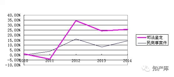 图表一 民商事案件和司法鉴定案件数量增长率对比