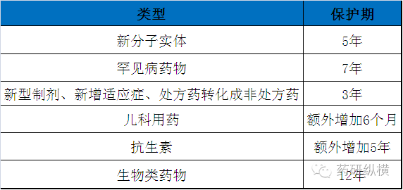 FDA对新药补充申请(包括新型制剂、新增适应证以及处方药转换成非处方药)而需进行新的临床试验的药品给予3年的数据保护期。为促进罕见药和儿科用药的发展,美国给予罕用药7年的数据保护期,儿科用药则在5年或3年的保护期上再延长额外6个月。